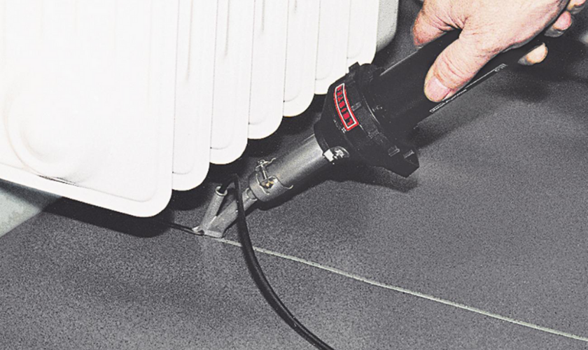 Step 2: Insert the welding rod with the UNIFLOOR E hot-air welding machine.